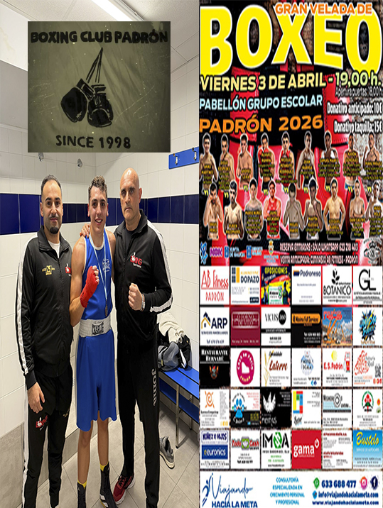 Un año más los aficionados padroneses al boxeo acudirán a su tradicional cita con la longeva velada de boxeo pascual que Sergio Seco acaba de iniciar anunciando: «¡La cuenta atrás!Padrón volverá a vibrar con el Boxeo en una de las citas más esperadas del año. Gran Velada de Boxeo «Clásica de Pascua 2026″ el viernes 3 de abril a las 19:00 horas (apertura de puertas 18:00 horas), en el Pabellón Grupo Escolar de Padrón».